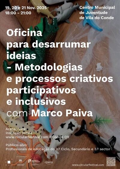 No âmbito do seu programa educativo, a Circular Associação Cultural promove a oficina “Para desarrumar ideias | Metodologias e processos criativos participativos e inclusivos”, orientada por Marco Paiva, ator, encenador e diretor artístico da Terra Amarela, plataforma dedicada à criação artística inclusiva.