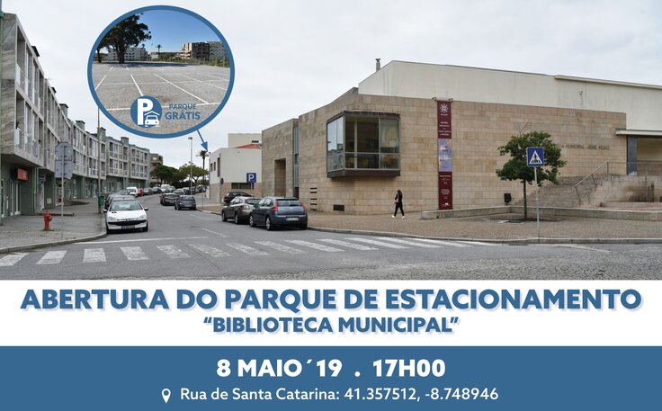 Na próxima quarta-feira, pelas 17h00, abre ao público o novo Parque de Estacionamento “Biblioteca Municipal”, situado na Rua de Santa Catarina (coordenadas 41.357512, -8.748946) e que será de utilização gratuita.