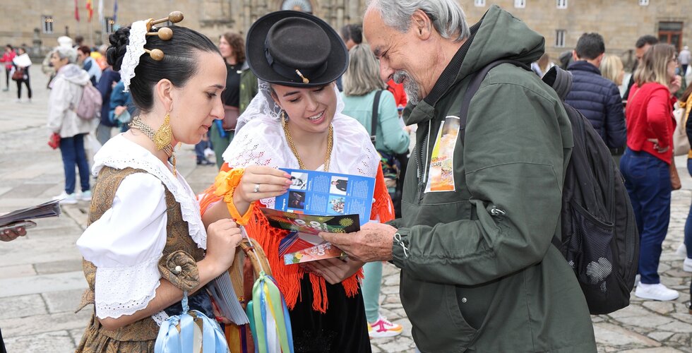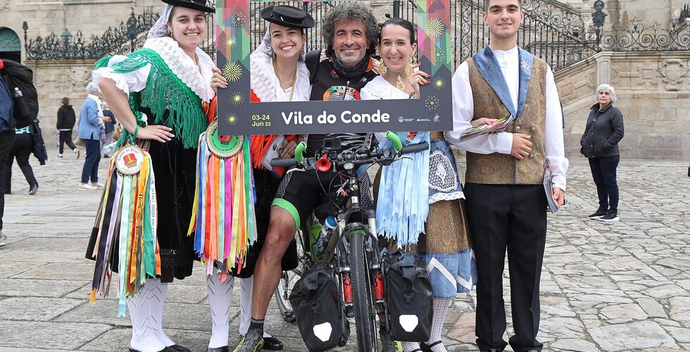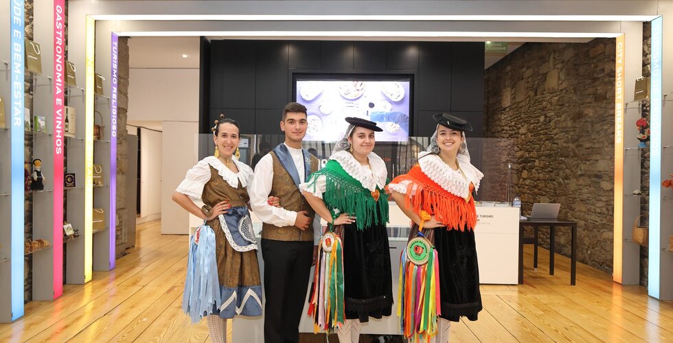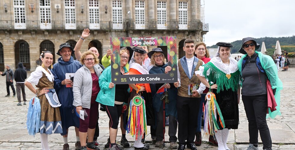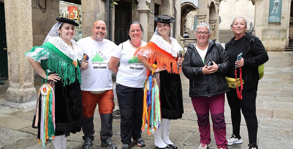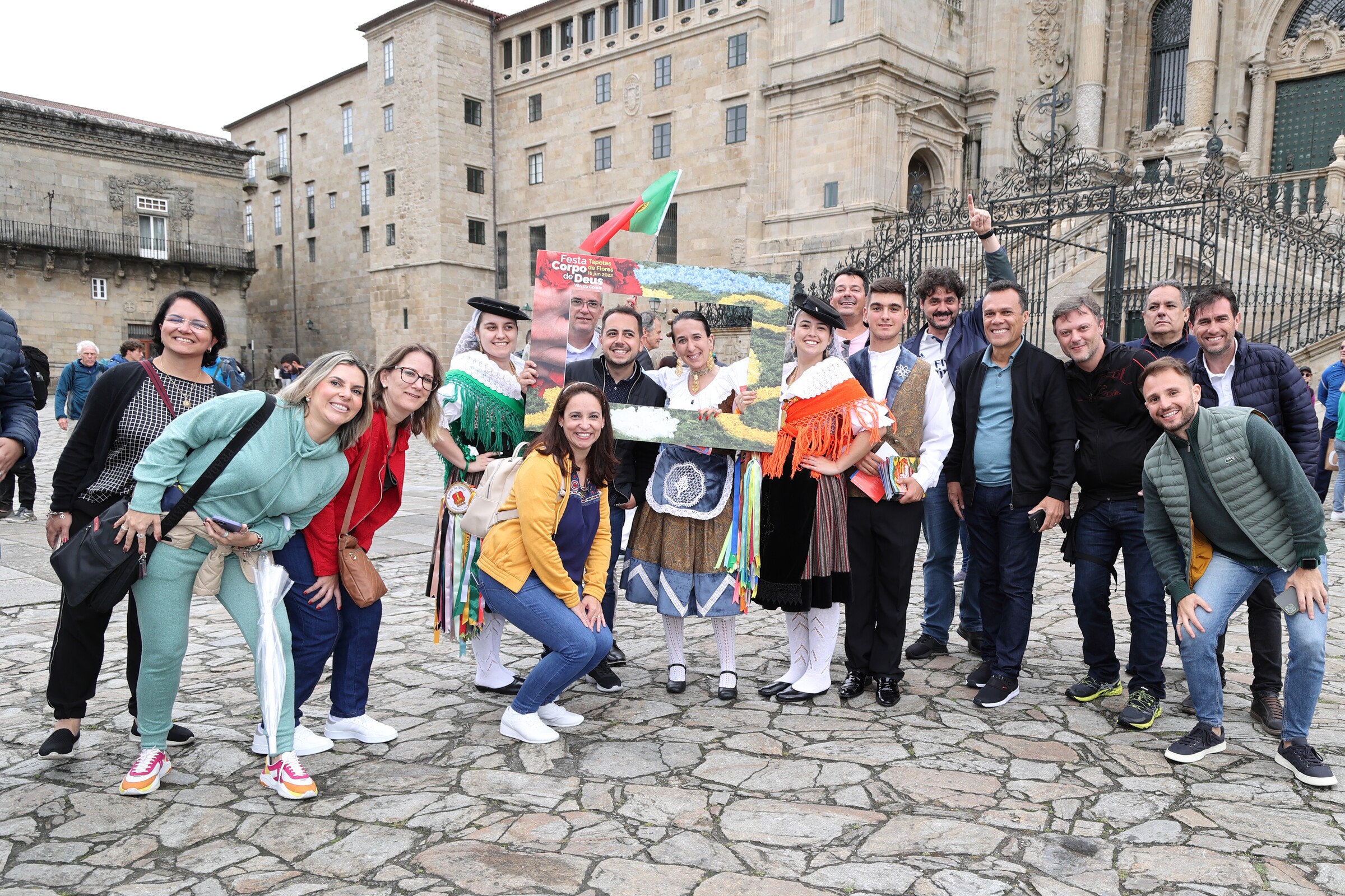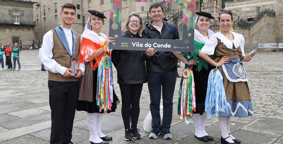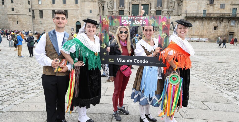 Depois da ação de sucesso no Aeroporto Francisco Sá Carneiro, os jovens elementos dos Ranchos das Rendilheiras do Monte e da Praça e a equipa do Serviço de Turismo da Câmara Municipal rumaram até Santiago de Compostela.