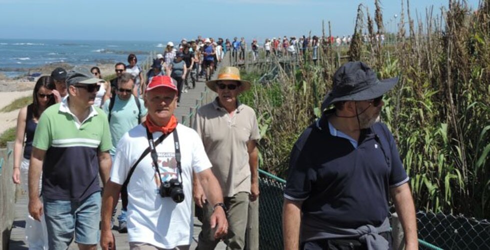 Com inicio junto a réplica da Nau Quinhentista, o percurso com mais de 10kms levou os caminheiros a calcorrear o passadiço junto ao mar desde Azurara, passando por Árvore, Mindelo, Vila Chã até Labruge, no extremo sul do Concelho, continuado depois até Matosinhos.