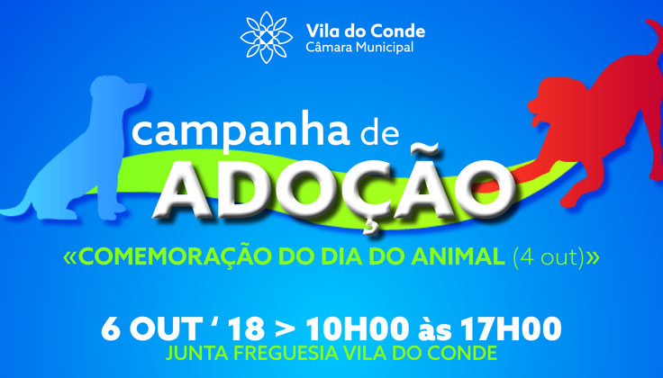 Este sábado, das 10h às 17h, os Serviços Veterinários da Câmara Municipal, com o apoio da Junta de Freguesia de Vila do Conde e do Rio Ave F.C., promovem uma Campanha de Adoção comemorativa do Dia Mundial do Animal.