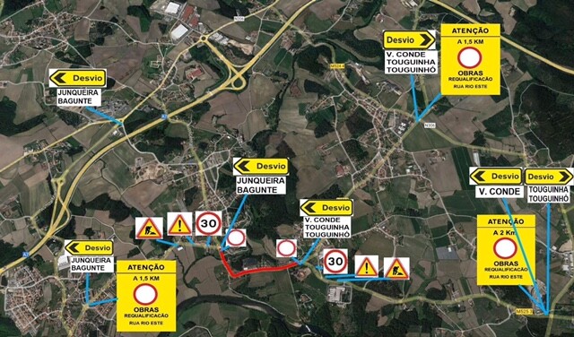 Corte de Trânsito - Empreitada de Beneficiação de Vias Municipais - Rua Central (Junqueira) / Rua do Rio Este (Touguinhó)
