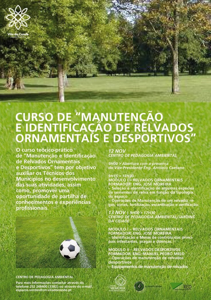 O Município de Vila do Conde, através da Divisão de Espaços Verdes e Jardins Públicos, em parceria com duas empresas da especialidade de relvados ornamentais e desportivos, organiza o curso de formação profissional, subordinado ao tema “Manutenção e Identificação de Relvados Ornamentais e Desportivos”.