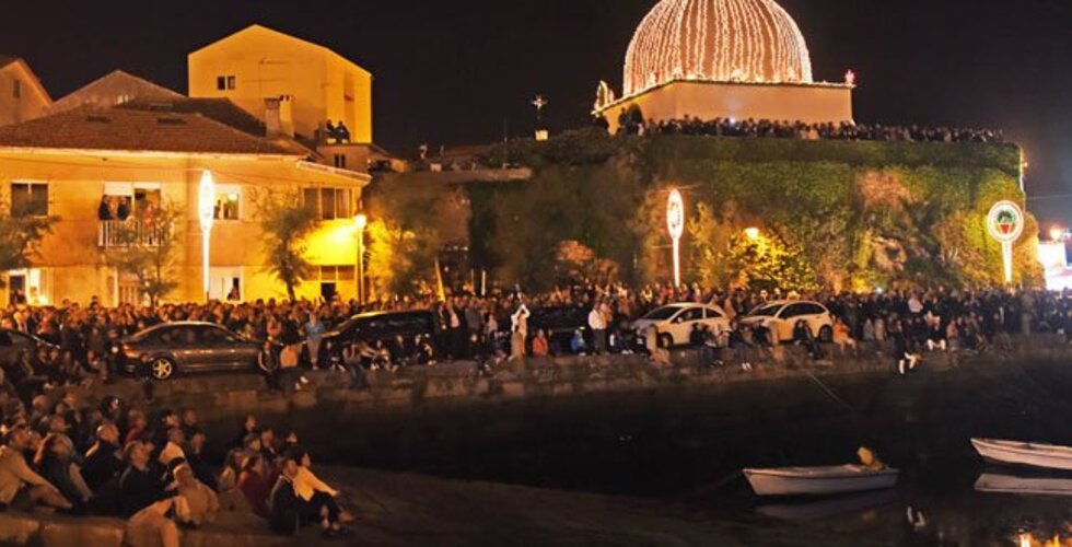 À noite, cumpriu-se mais uma vez a tradicional “ida à Praia” dos Ranchos do Monte e da Praça, acompanhados pelos seus adeptos, com a habitual folia e alegria, a cantar e a dançar. O Largo dos Artistas encheu-se de gente para lançar os tradicionais apupos entre ranchos e, chegados à praia, tinham à sua espera muita gente, muitos das quais forasteiros, que, conhecendo esta secular tradição, apreciam os grupos, virados para o mar, a cantar e a entoar as quadras de louvor ao Padroeiro.