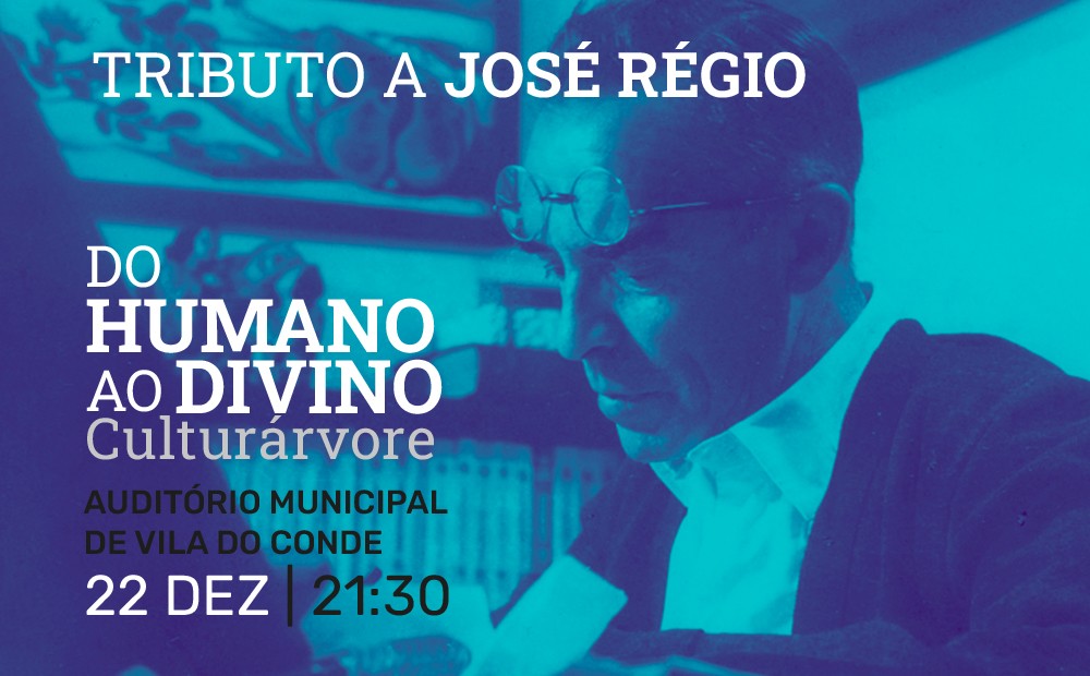 No próximo dia 22 de dezembro comemora-se os 52 anos da morte de José Régio e o Auditório Municipal vai ser palco, às 21h30, de um espetáculo tributo ao escritor vilacondense intitulado “Do Humano ao Divino”, promovido pela Culturárvore com o apoio da Câmara Municipal de Vila do Conde.