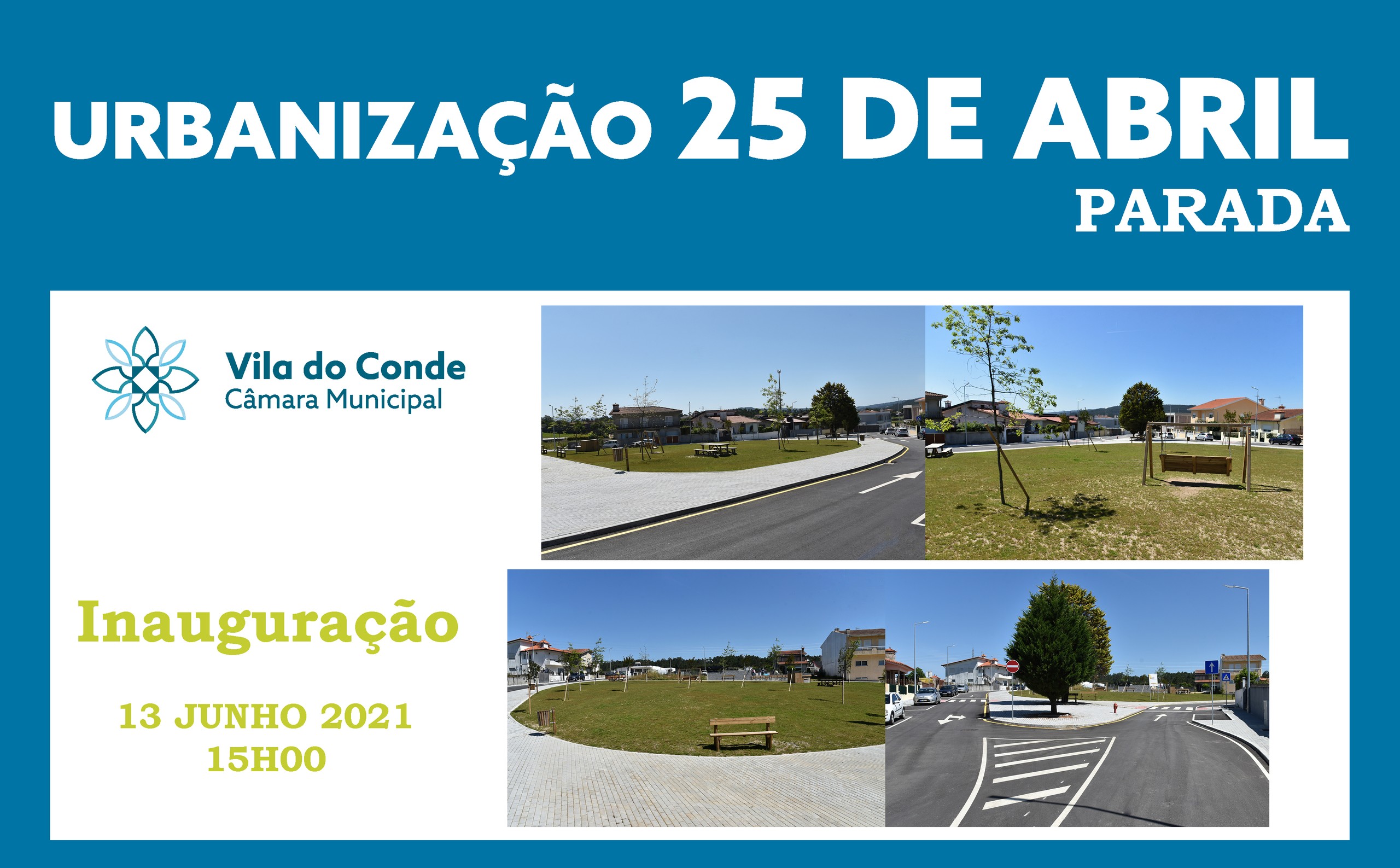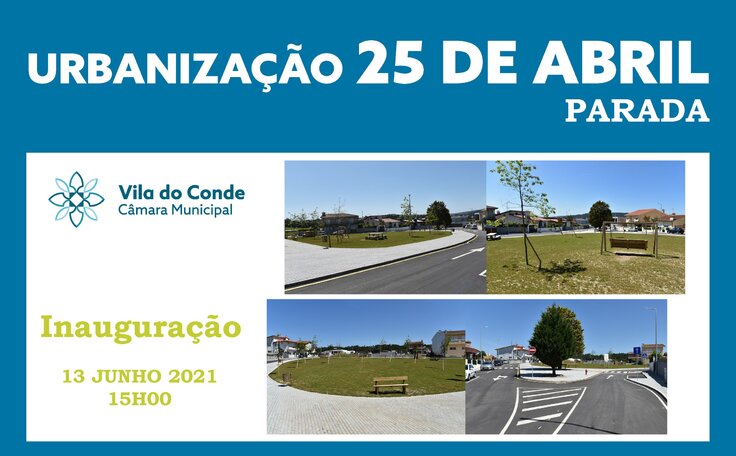 Será inaugurada no próximo domingo, dia 13, pelas 15 horas, a requalificação da Urbanização 25 de Abril, em Parada, numa cerimónia presidida pela Presidente da Câmara, Dr.ª Elisa Ferraz, e pelo Presidente da União de Freguesias Bagunte, Ferreiró, Outeiro e Parada, Sr. Bernardino Silva.