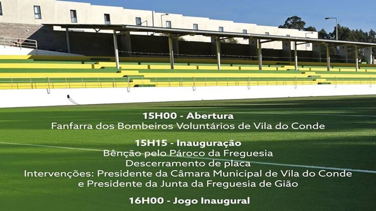 No dia 18 de março, domingo, pelas 15h00, será inaugurado o relvado sintético do Parque de Jogos Municipal de Gião, uma obra realizada no âmbito do Plano de Desenvolvimento Desportivo Concelhio, que potenciará a utilização do espaço e melhorará as condições do uso do equipamento.