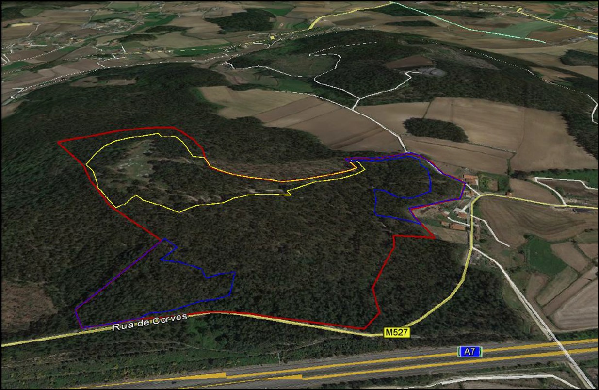 Nesta última fase foi limpa uma área a rondar os 1,5ha de área, dividida por duas zonas distintas. A localização e dimensão dessas zonas poderão ser conferidas no mapa em anexo e estão marcadas a azul. A amarelo surge a área limpa em intervenções anteriores e a vermelho é visível o limite da propriedade municipal.