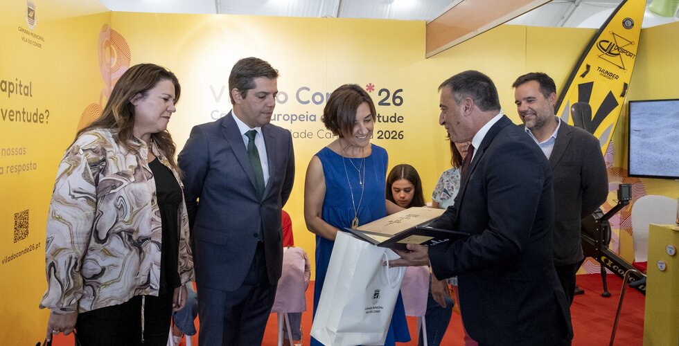 A visita passou pelas centenas de expositores presentes com destaque para o stand do Município de Vila do Conde, que este ano promove a candidatura de Vila do Conde a Capital Europeia da Juventude 2026.