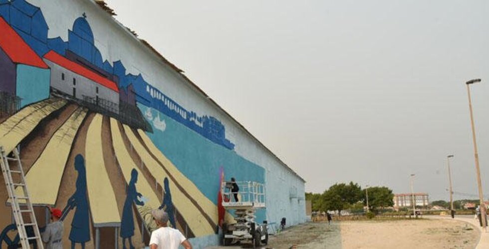 São cerca de 500m2 de área que deram lugar a uma tela gigantesca, na rua, onde se recupera a memória da atividade que se desenvolvia no século passado em Vila do Conde, designadamente neste local.