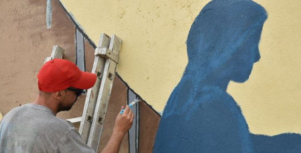- Mural da seca do bacalhau em fase de conclusão