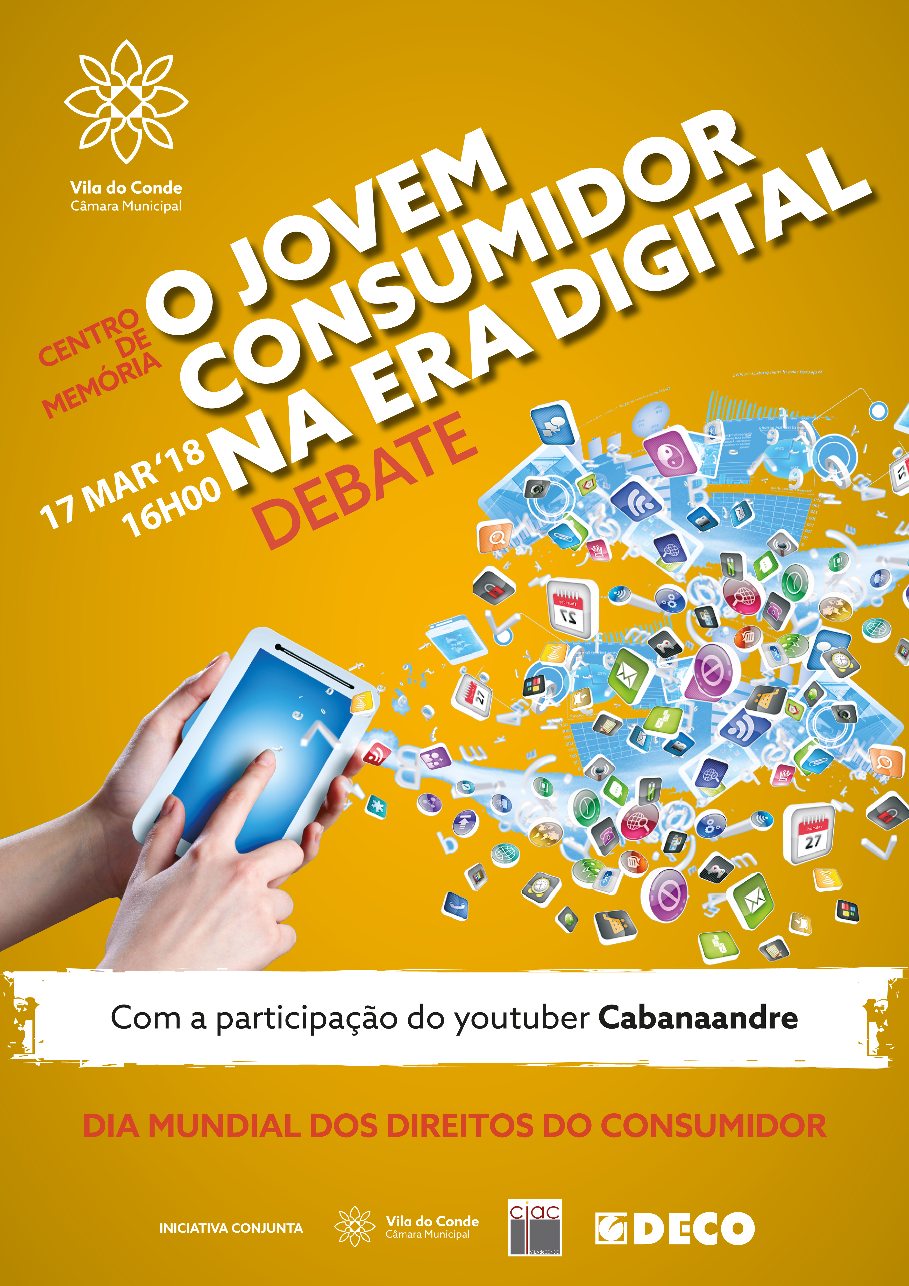 Para celebrar o Dia Mundial dos Direitos do Consumidor, o CIAC – Centro de Informação ao Consumidor da Câmara Municipal de Vila do Conde e a DECO- Associação para a Defesa do Consumidor promovem o debate “O Jovem Consumidor na Era Digital”, dia 17 de março, sábado, pelas 16h00 no Centro de Memória, em Vila do Conde.