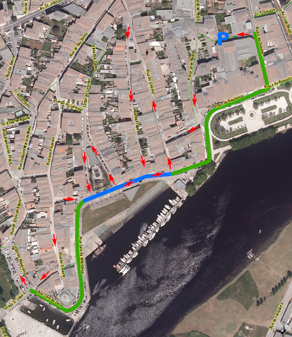 VERDE: trânsito encerrado, havendo no entanto um canal de circulação no sentido poente-nascente para viaturas de emergência, moradores e cargas e descargas.