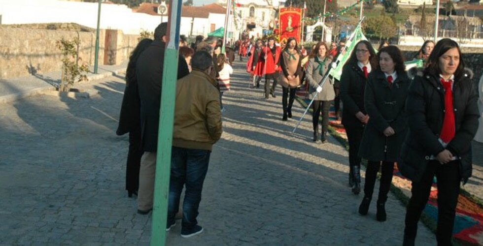 Na Procissão foram incorporados vários andores, figurantes e muitos devotos que percorreram as ruas da freguesia, cumprindo-se, como habitualmente, a tradição do andor de S. Sebastião ser transportado por jovens fardados de camuflado e com os pés descalços.