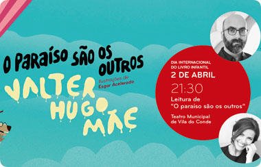 O Dia Internacional do Livro Infantil, que se assinala esta quinta-feira, dia 2 de abril, vai ser vivido de forma especial em Vila do Conde. Valter Hugo Mãe e a apresentadora Sónia Araújo vão ler “O paraíso são os outros”, o mais recente livro do escritor para crianças, e conversar sobre a obra, numa sessão, com entrada livre, a ter lugar no Teatro Municipal, às 21h30.