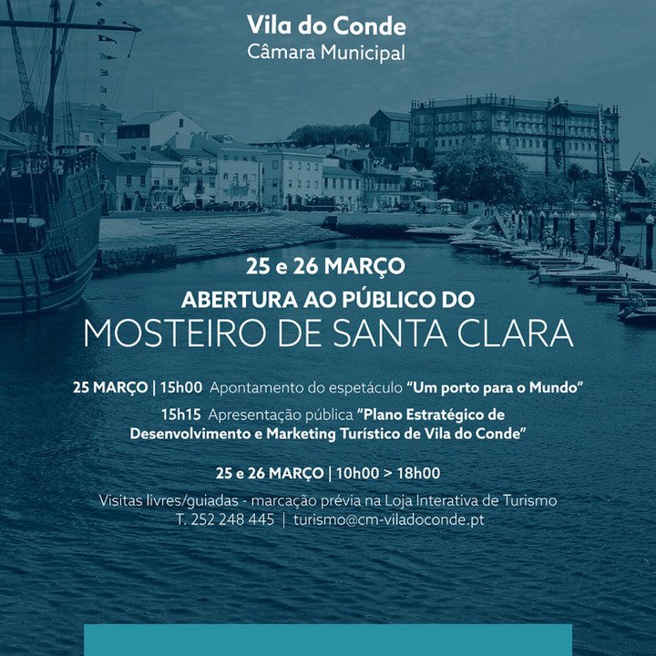 O Mosteiro de Santa Clara é o local escolhido para o Município de Vila do Conde, em parceria com o Turismo Porto e Norte de Portugal apresentar publicamente o Plano Estratégico de Desenvolvimento e Marketing Turístico de Vila do Conde, no próximo sábado, dia 25, pelas 15h.