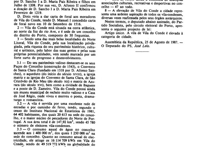 Faleceu José Lello, autor da proposta para elevação de Vila do Conde a cidade
