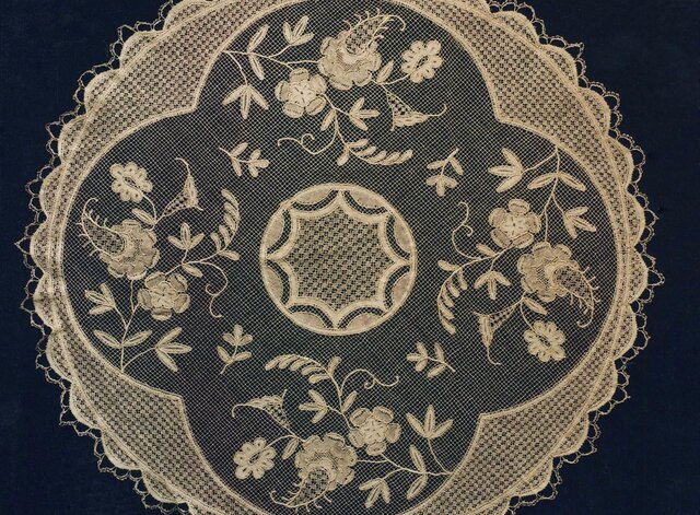 Pano da "Rosinha de meio ponto" em exposição