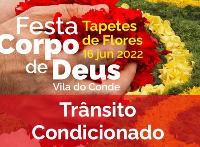 A Câmara Municipal de Vila do Conde informa que o trânsito estará condicionado, nos próximos dias 15 e 16 de junho, em virtude da realização dos Tapetes de Flores e da Procissão de Corpo de ...2022/06/09 -