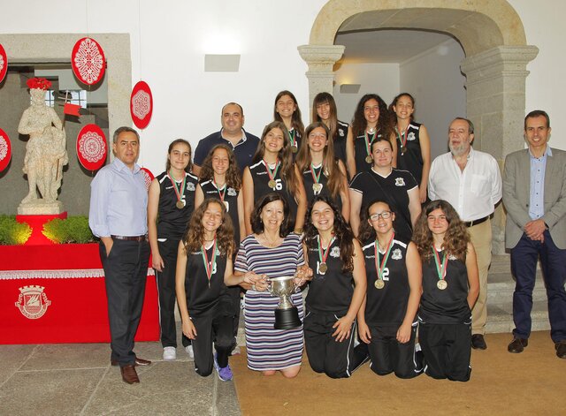 A Presidente, Dr.ª Elisa Ferraz, o Vice-Presidente, Eng.º António Caetano, e o Vereador do Pelouro do Desporto, Dr. José Aurélio Baptista, receberam a equipa feminina de Infantis do Ginásio ...2015/06/18 -