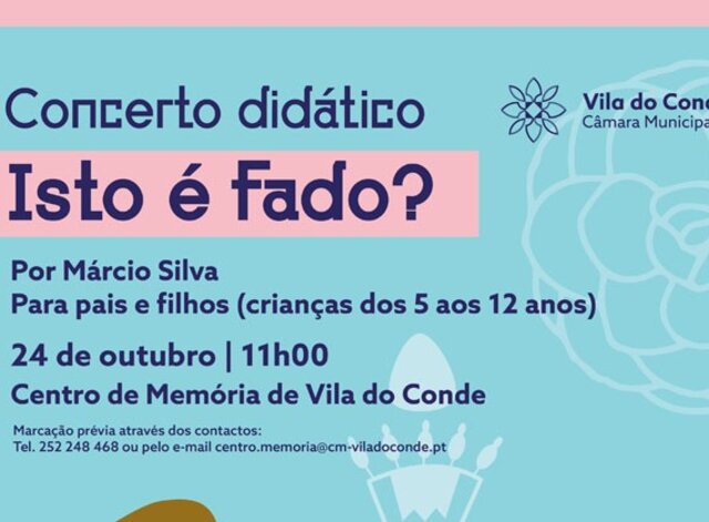 No próximo domingo, pelas 11h, o Centro de Memória acolhe o concerto didático “Isto é fado?” para pais e filhos, ao abrigo do programa de apoio às entidades culturais locais, promovido pela Câmara ...2021/10/19 -