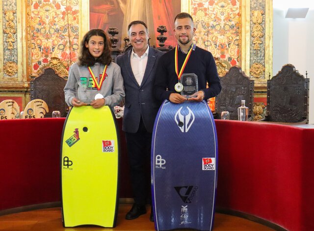 Atletas de bodyboard Luana Dourado e Joel Rodrigues recebidos nos Paços do Concelho