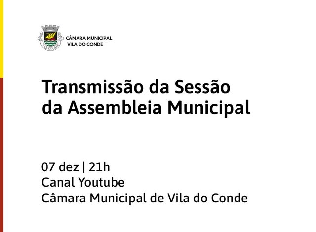 A Sessão Ordinária da Assembleia Municipal agendada para esta quarta-feira, dia 7 de dezembro, às 21h00, será transmitida em direto através do canal de youtube da Câmara Municipal ...2022/12/07 -