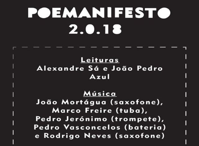 No próximo dia 9 de fevereiro, pelas 21h30, o Auditório Municipal apresenta o espetáculo “Poemanifesto”, uma performance poético-musical com interpretação dos atores Alexandre Sá e João Pedro Azul ...2019/01/30 -