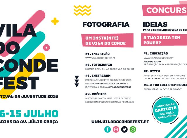 A Câmara Municipal promove um Concurso de Ideias e um Concurso de Fotografia destinado a jovens dos 12 aos 25 anos e naturais e/ou residentes no concelho de Vila do Conde. Esta iniciativa ...2018/06/29 -