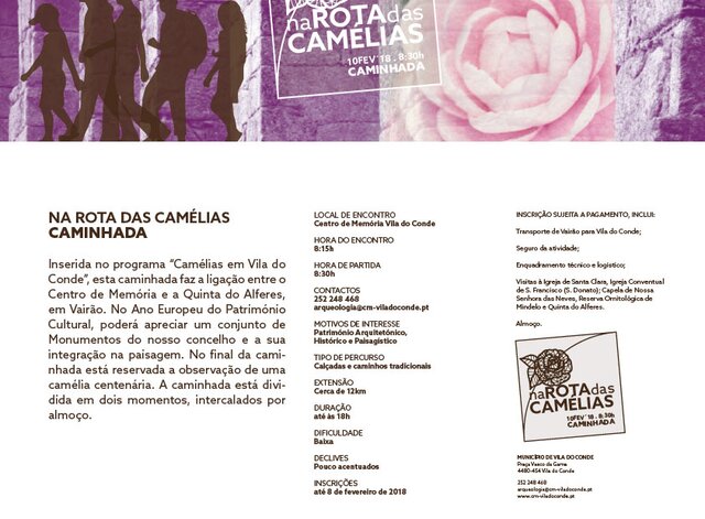 A Câmara Municipal de Vila do Conde vai organizar no próximo dia 10 de fevereiro (sábado) uma caminhada dedicada às camélias, chamada precisamente “Na rota das camélias”.O projeto “Camélias em ...2018/02/06 -