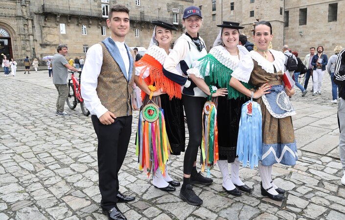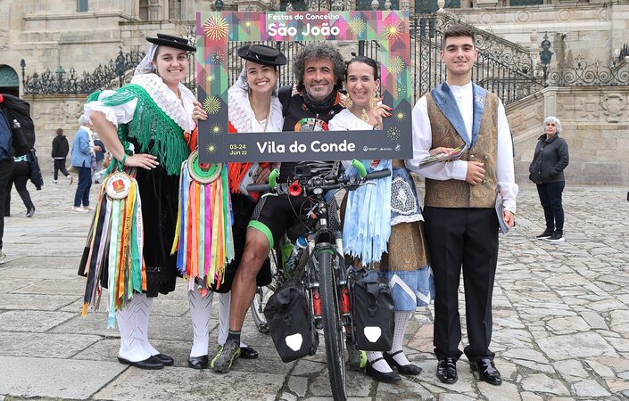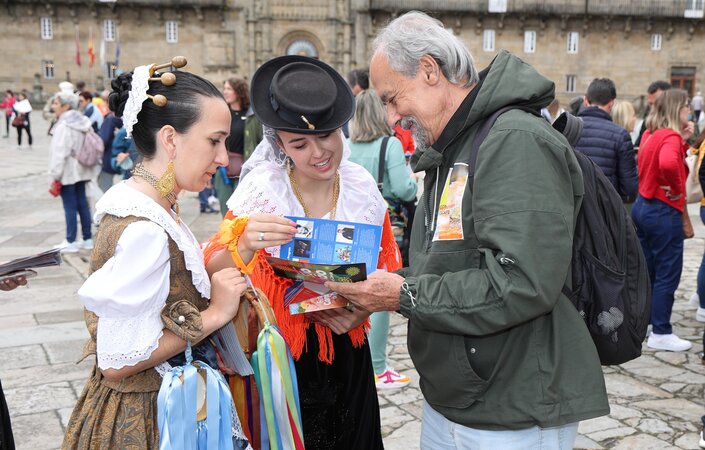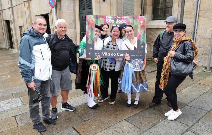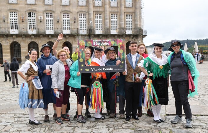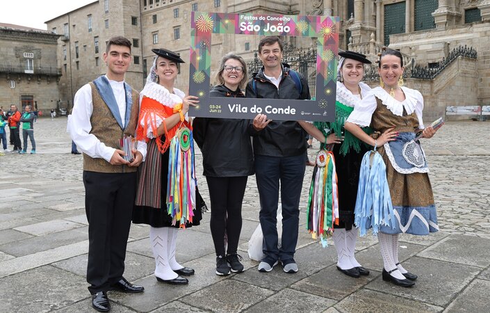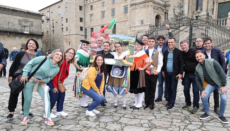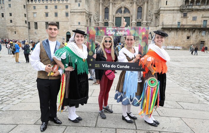 Depois da ação de sucesso no Aeroporto Francisco Sá Carneiro, os jovens elementos dos Ranchos das Rendilheiras do Monte e da Praça e a equipa do Serviço de Turismo da Câmara Municipal rumaram até Santiago de Compostela.