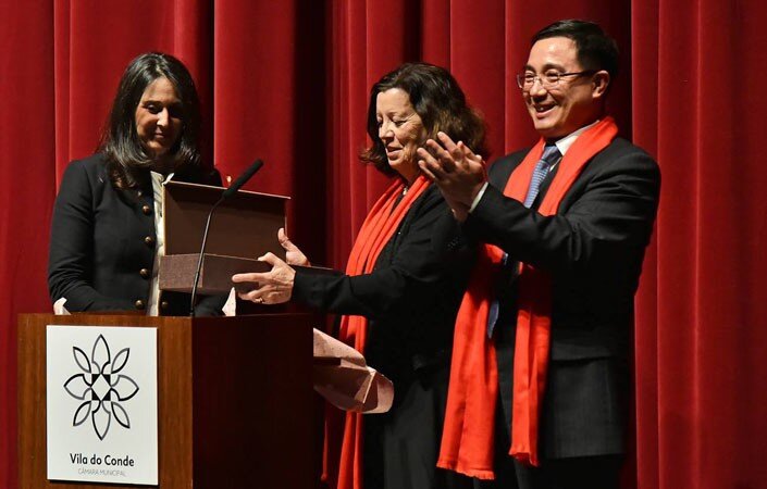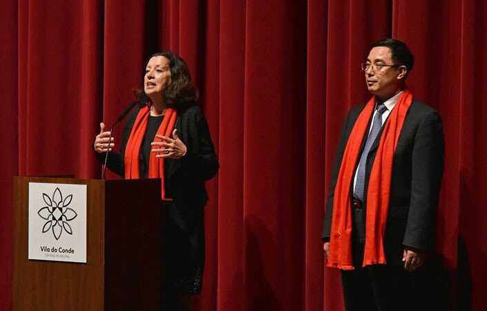 O Embaixador da República Popular da China em Portugal, Sr. Cai Run, e a Presidente da Câmara Municipal de Vila do Conde, Dra. Elisa Ferraz, assistiram, ontem, no Teatro Municipal, ao belo espetáculo que a Companhia Estudantil de Macau ofereceu aos presentes, integrado nas celebrações do Ano Novo Chinês.