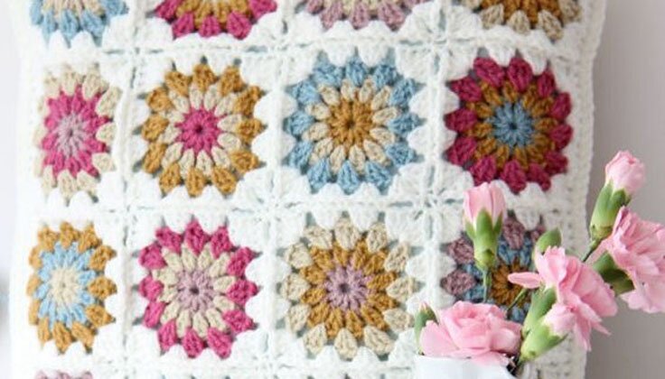 Granny square (almofadas em lã) - granny square ou “quadradinhos da avó”, é um dos pontos mais conhecidos do crochet circular. Este ponto é muito usado para fazer mantinhas, almofadas e até peças de roupa. O trabalho cresce sobre a forma de um quadrado com espaços a separar grupo de pontos. É uma forma de aproveitar restos de lã.