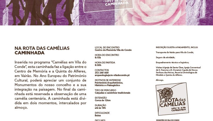 O projeto “Camélias em Vila do Conde” associou-se ao Ano Europeu do Património Cultural e, por esse motivo, esta caminhada fará também a ligação a um conjunto de monumentos do nosso concelho e a sua integração na paisagem.