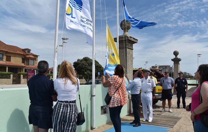 Na cerimónia foram hasteadas três bandeiras, a bandeira azul, atribuída a todas as zonas balneares do Concelho, a bandeira acessível, atribuída às praias do Turismo, da Sr.ª da Guia, Praia de Mindelo, Praia de S.Paio/Moreiró e Labruge e a bandeira Qualidade de Ouro atribuída à Frente Urbana Norte, Frente Urbana Sul, Mindelo e Labruge.