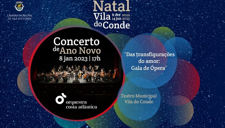 A Câmara Municipal de Vila do Conde apresenta o Concerto de Ano Novo “Das transfigurações do amor: Gala de Ópera” pela Orquestra da Costa Atlântica, dirigida pelo Maestro Luis Miguel Clemente, no próximo domingo, dia 8 de janeiro, no Teatro Municipal, às 17h00. O concerto terá como solistas convidados a soprano Dora Rodrigues e do barítono Tiago Matos.