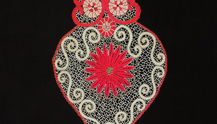 Coração em renda de bilros em exposição no México