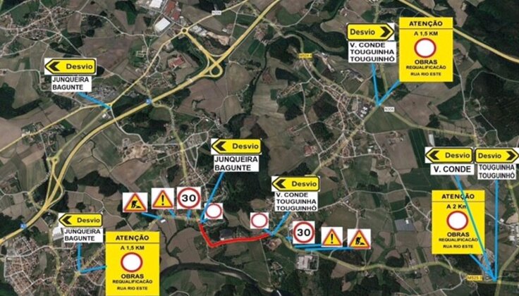 Corte de Trânsito - Empreitada de Beneficiação de Vias Municipais - Rua Central (Junqueira) / Rua do Rio Este (Touguinhó)