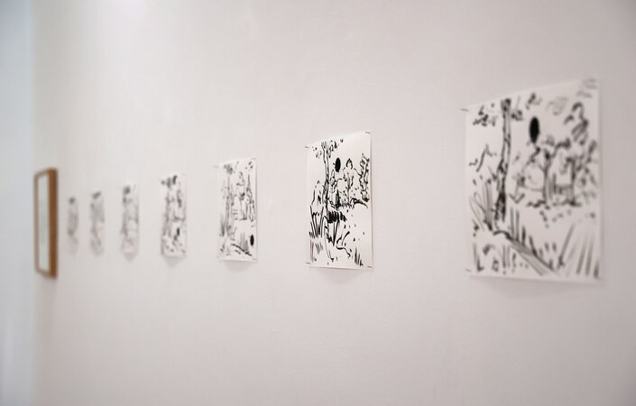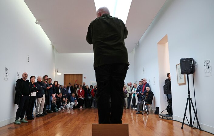 No passado sábado a Galeria Julio inaugurou a exposição “Diálogos IV: De Julio em diante”, com desenhos de Julio e António Olaio, tendo contado, no momento da abertura, com a apresentação de uma performance do artista.