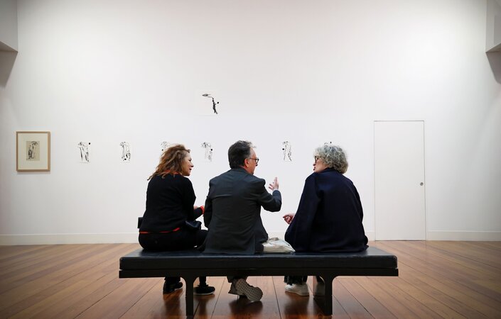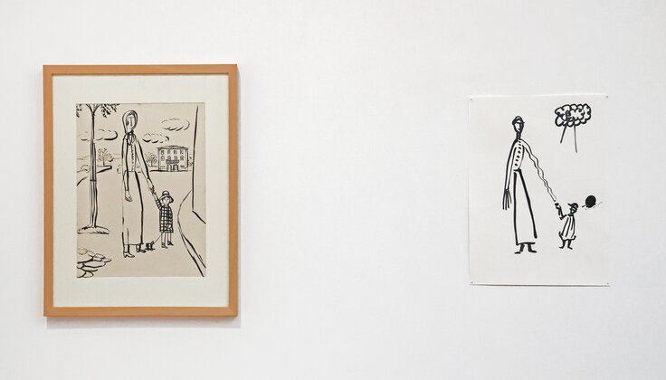 A mostra conta com 19 desenhos de Julio, todos a tinta da china, produzidos entre os anos 30 e 70 do século passado. Destaque para 4 desenhos, criados logo depois do “25 de abril”, representativos de uma figura feminina, tão característica da obra de Julio, com um cravo. Por parte de António Olaio, artista de pintura e performance, representado nas mais importantes coleções de arte nacionais, assim como também a nível internacional, contamos com cerca de 150 desenhos, entre tinta da china e grafite, todos de produção recente. A partir da seleção de obras de Julio que fez, o artista desenvolveu um diálogo através da construção / desconstrução desses mesmos trabalhos previamente escolhidos.
