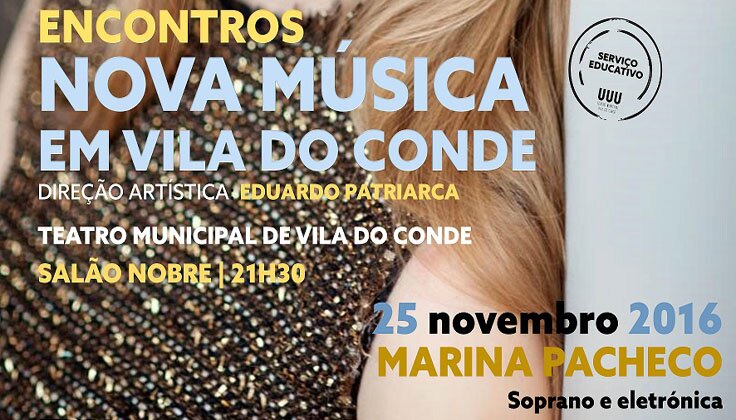 Os “Encontros Nova Música em Vila do Conde” encerram o ano de 2016 esta sexta-feira, às 21h30, com um concerto pela soprano Marina Pacheco, no Teatro Municipal.