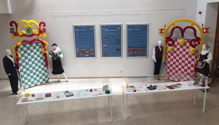 A acompanhar a exposição bibliográfica, exibem-se dois pares de cada rancho, vestidos a rigor e engalanados com o respetivo arco do grupo a que pertencem.