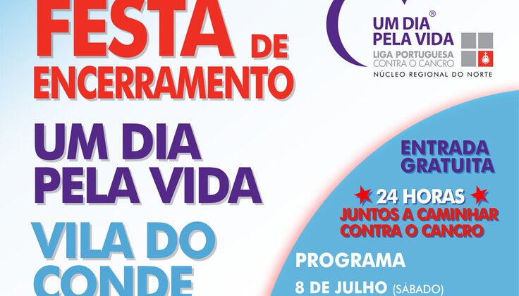 Este sábado e domingo, chegam ao fim as atividades promovidas no âmbito do projeto “Um Dia pela Vida”, do Núcleo Regional do Norte da Luta Portuguesa contra o Cancro, com uma grande Festa de Encerramento que terá lugar no Mercado Municipal de Vila do Conde.