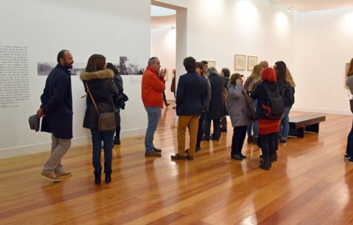 Com um pendor muito didático, esta exposição percorre o tempo e os lugares — do norte vilacondense até ao sul, ainda romano, de Évora — por onde o pintor-poeta viajou, muitas vezes de comboio, levado pela vida, pelo trabalho, pelas circunstâncias, e foi fixando sempre, no seu traço ágil, leve, povoando-as, por vezes, com as suas figuras de eleição: a criança, o palhaço, o músico-poeta e a rapariga-musa.