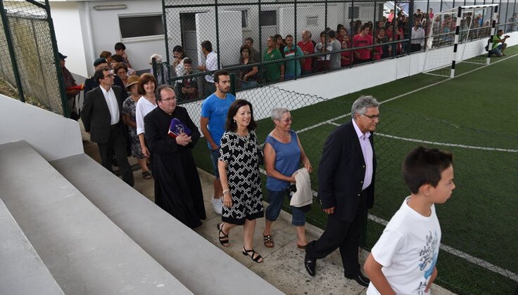 Num ambiente de festa, e depois da atuação do Grupo Ruxaxá de Labruge, teve início a cerimónia, com o descerramento de uma placa alusiva à inauguração e a bênção das instalações, pelo pároco da freguesia Pe. Augusto carneiro da Silva, a que se seguiram as intervenções do Presidente da União de Freguesias e da Presidente da Câmara, ambas se referindo à excelência das instalações e às melhores condições que o equipamento passa a oferecer para a prática desportiva.