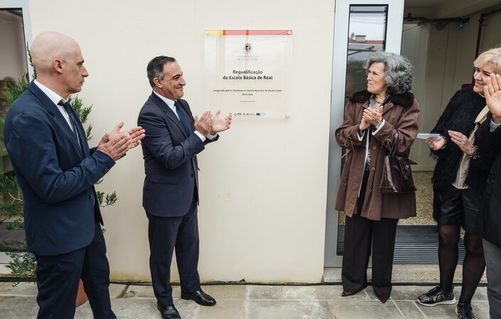 O Presidente da Câmara Municipal de Vila do Conde inaugurou, hoje, a requalificação da Escola Básica de Real, em Vilar do Pinheiro, com a presença do Delegado Regional de Educação do Norte, Luís Carlos Lobo, da Representante da Área Metropolitana do Porto, Ariana Pinho, da Diretora do Agrupamento de Escolas D. Pedro IV, Rosa Sampaio, e do Presidente da Junta de Vilar do Pinheiro, Miguel Pereira.