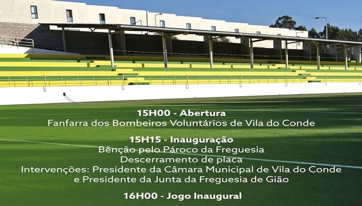 No dia 18 de março, domingo, pelas 15h00, será inaugurado o relvado sintético do Parque de Jogos Municipal de Gião, uma obra realizada no âmbito do Plano de Desenvolvimento Desportivo Concelhio, que potenciará a utilização do espaço e melhorará as condições do uso do equipamento.