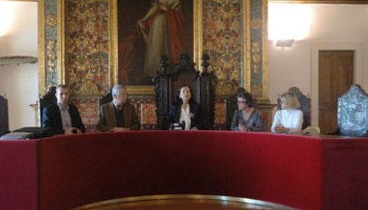 A Dr.ª Elisa Ferraz esteve acompanhada pelo Vereador do Turismo, Dr. José Aurélio, por Carlos Laranja, em representação da Associação para Defesa do Artesanato e Património, pela responsável pela Museu das Rendas, Dr.ª Ivone Pereira, e pela rendilheira Maria da Guia.