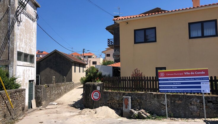 Estão a decorrer obras de requalificação na Rua de Barros e Travessa do Monte, na freguesia da Junqueira, que contemplam a pavimentação, a execução de uma rede de águas pluviais e a reformulação do espaço central, com o ordenamento do estacionamento automóvel e criação de zona de circulação para os peões.