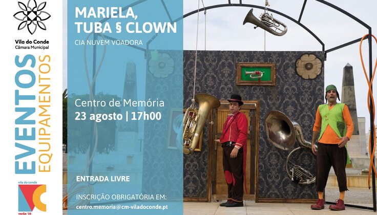 No próximo domingo, pelas 17h, o Centro de Memória irá receber um divertido espetáculo da Nuvem Voadora, para toda a família. Falamos de “Mariela tuba & clown”.